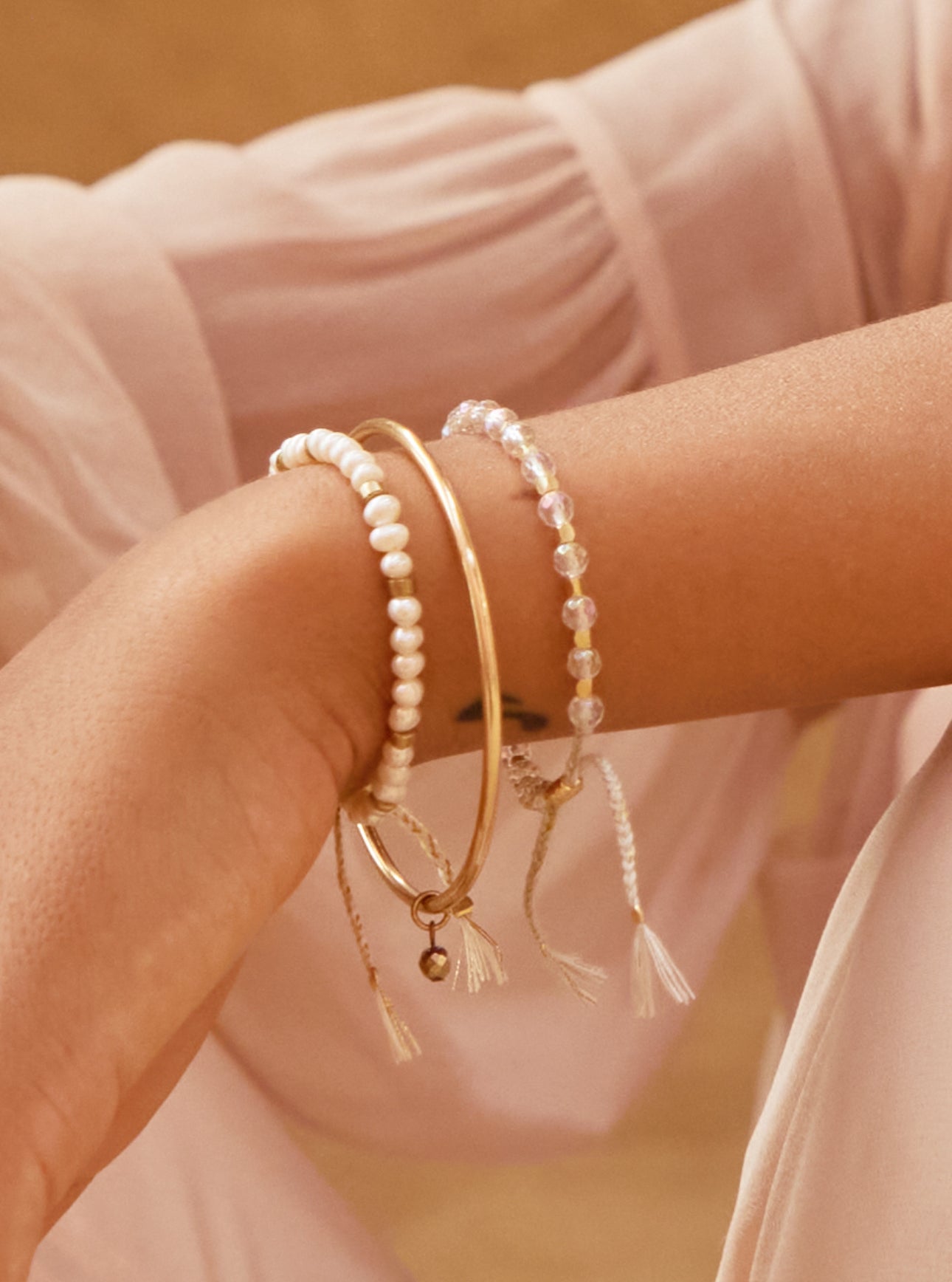 Bring positive energy to your life with this SunMoonRain 100% handmade healing stretch bracelet in Rainbow Clear Crystal Quartz with 18k yellow gold vermeil nuggets that combines modern sophistication & design with healing abilities.