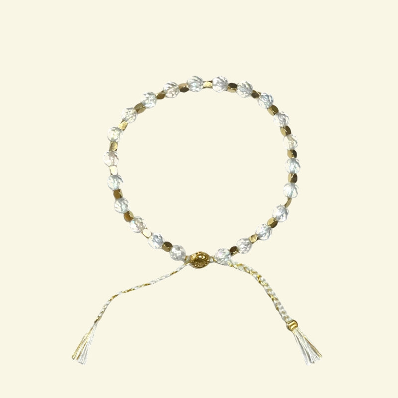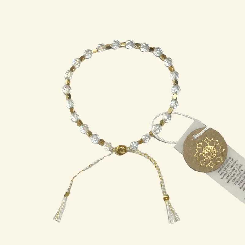 Each bracelet is tagged with an explanation of crystal quartz powers as well as a beautiful linen pouch, to keep it safe. Faceted beads are 4 mm and circumference of bracelet fits 17 -19 cm.