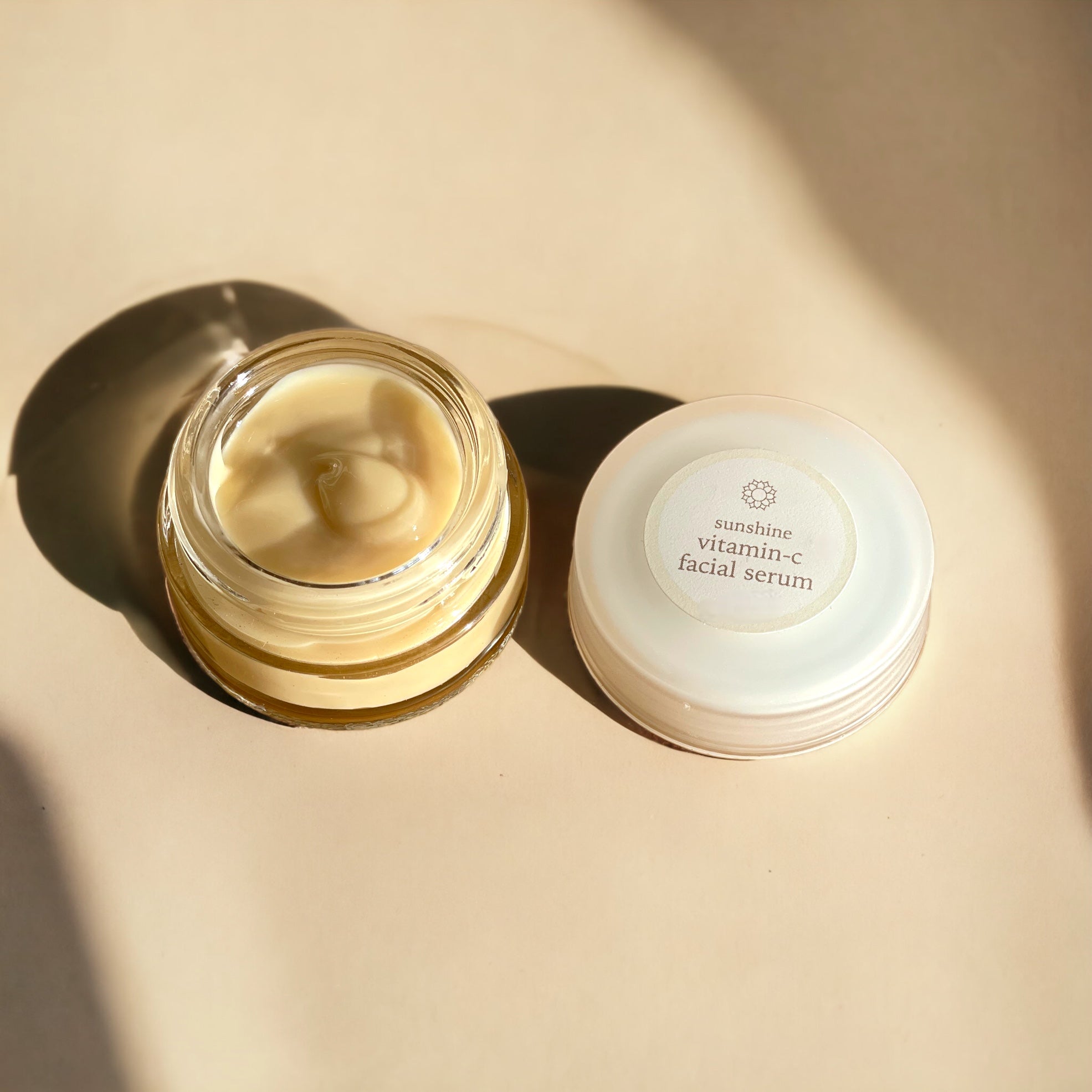 A founder favorite, we can't get enough of our Sunshine Serum! A Vitamin C concentrated facial serum that is gentle, effective, and nourishing. Formulated with nutrient-dense rosehip seed oil, which contains powerful and effective Omega-3 & 6 fatty acids, an additional boost of Vitamin C, Gamma Linoleic Acid, and other essential fatty acids to promote the healthy look of even, bright skin.