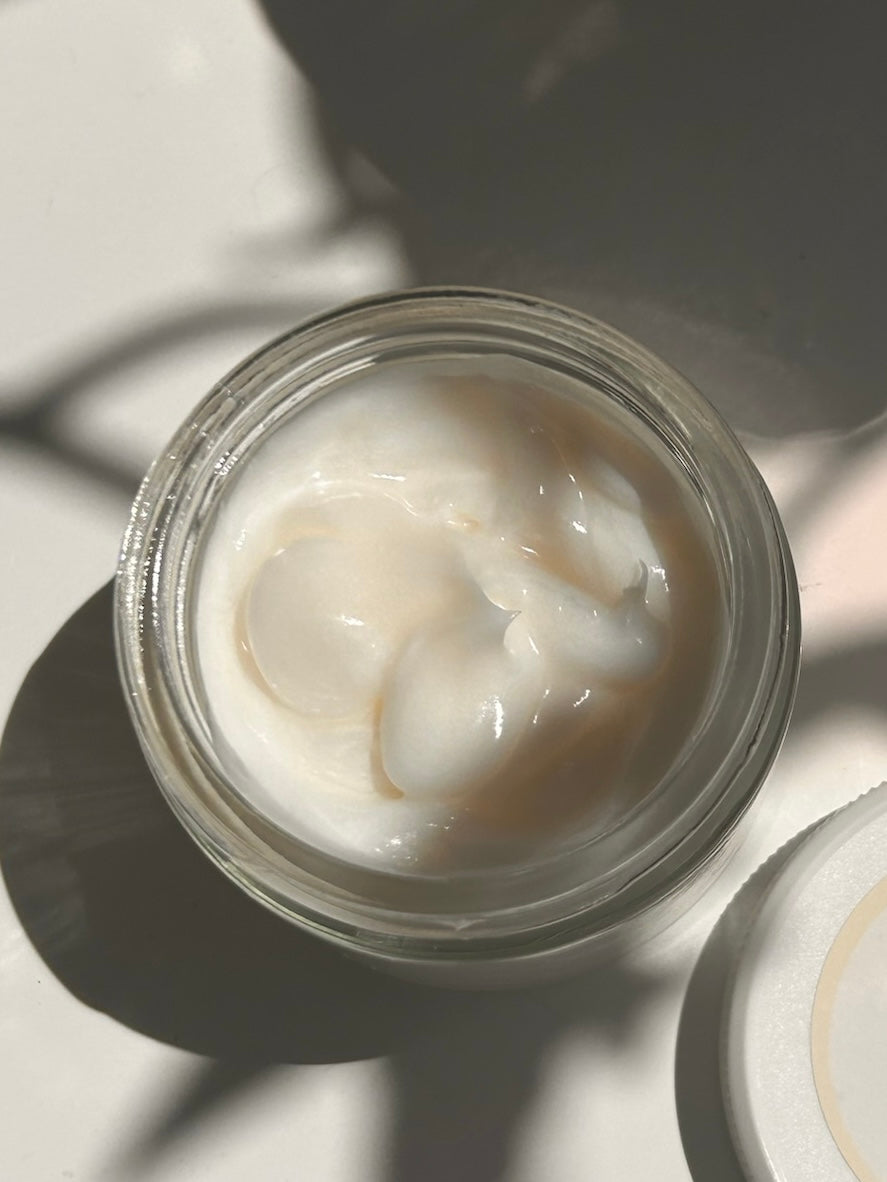 Ingredients - 96% Naturally Derived // 55% Organic: deionized aqua, organic aloe vera leaf juice, sodium stearate, glycerin, cetearyl alcohol, organic coconut oil, tamanu seed oil, organic starflower seed oil, flax seed oil, organic jojoba seed oil, cetyl alcohol, organic(sesame seed oil, organic avocado oil, organic olive fruit oil, organic evening primrose oil, behentrimonium chloride, polysorbate-60, amodimethicone, vitamin e, apricot kernel oil, noni, pro-vitamin b5, coco-caprylate/caprate, guar hydroxypropyltrimonium chloride, colloidal oatmeal, acrylates/c10-30 alkyl acrylate crosspolymer, citric acid (naturally derived), organic gotu kola extract, organic horsetail plant extract, organic geranium extract, organic dandelion extract, sodium benzoate, potassium sorbate, gluconolactone, phenoxyethanol, ethylhexylglycerin