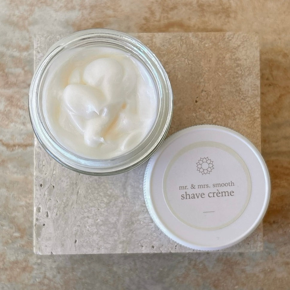 Mr. & Mrs. Smooth is a non-foaming, moisturizing conditioning creme to facilitate & support the best shaving experience ever! Loaded with oils such as coconut, tamanu, borage, sesame, & avocado to hydrate while oatmeal & vitamins E and B5 help to sooth & heal skin. Shaving never felt so good!