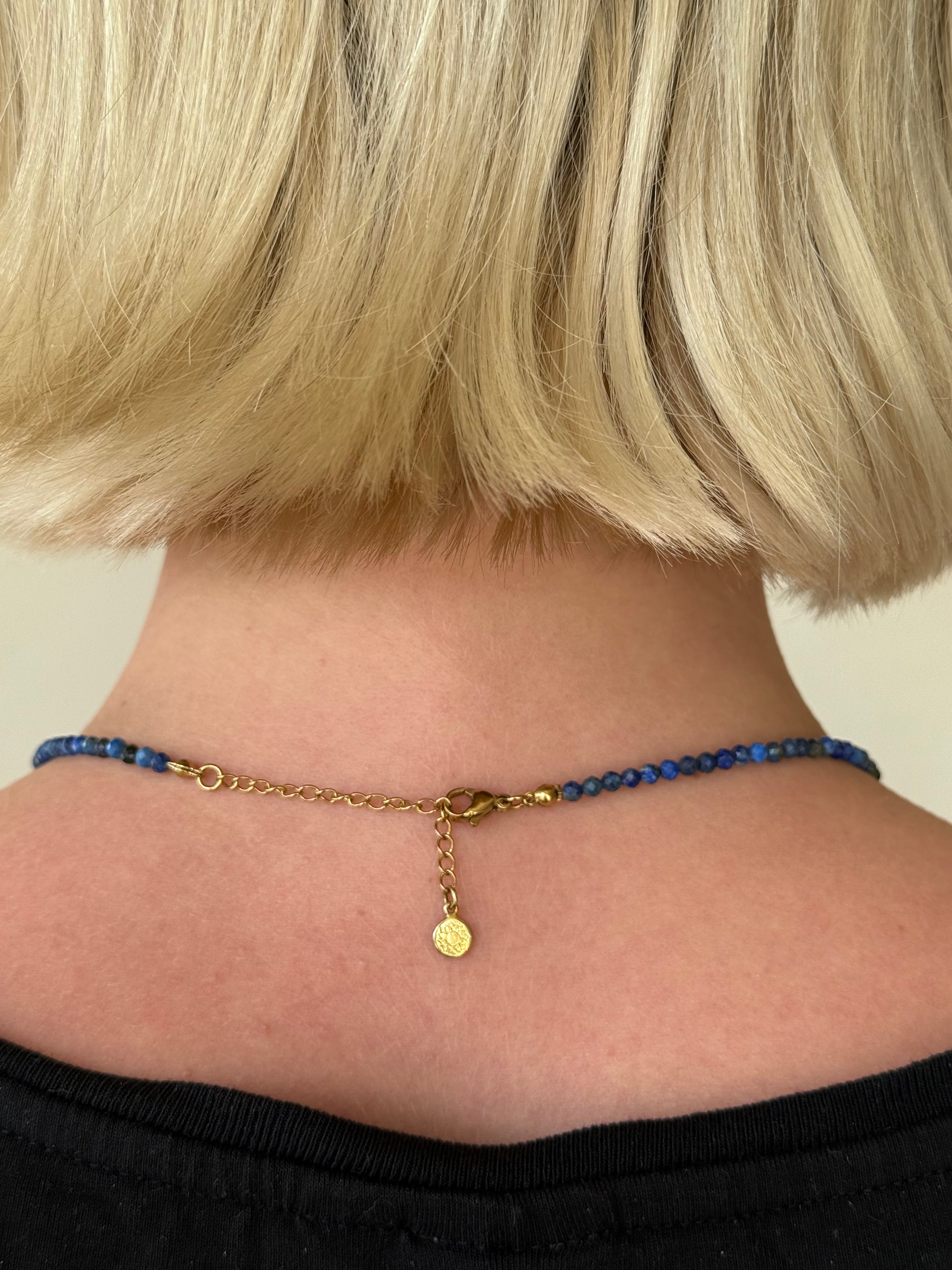 Bring positive energy to your life with this sun moon rain healing & positive energy necklace in Lapis Lazuli.