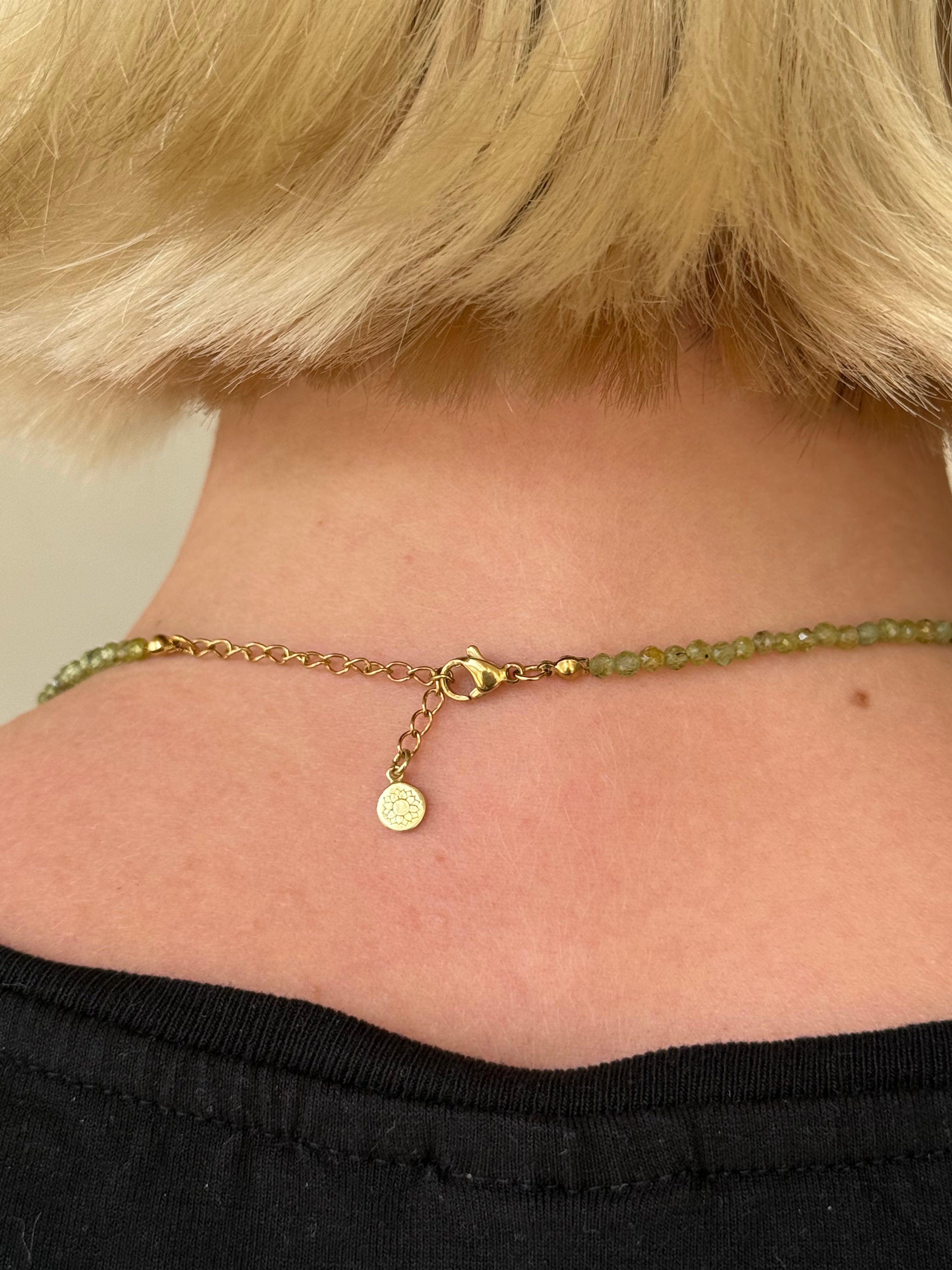 Bring positive energy to your life with this sun moon rain healing & positive energy necklace in Peridot.