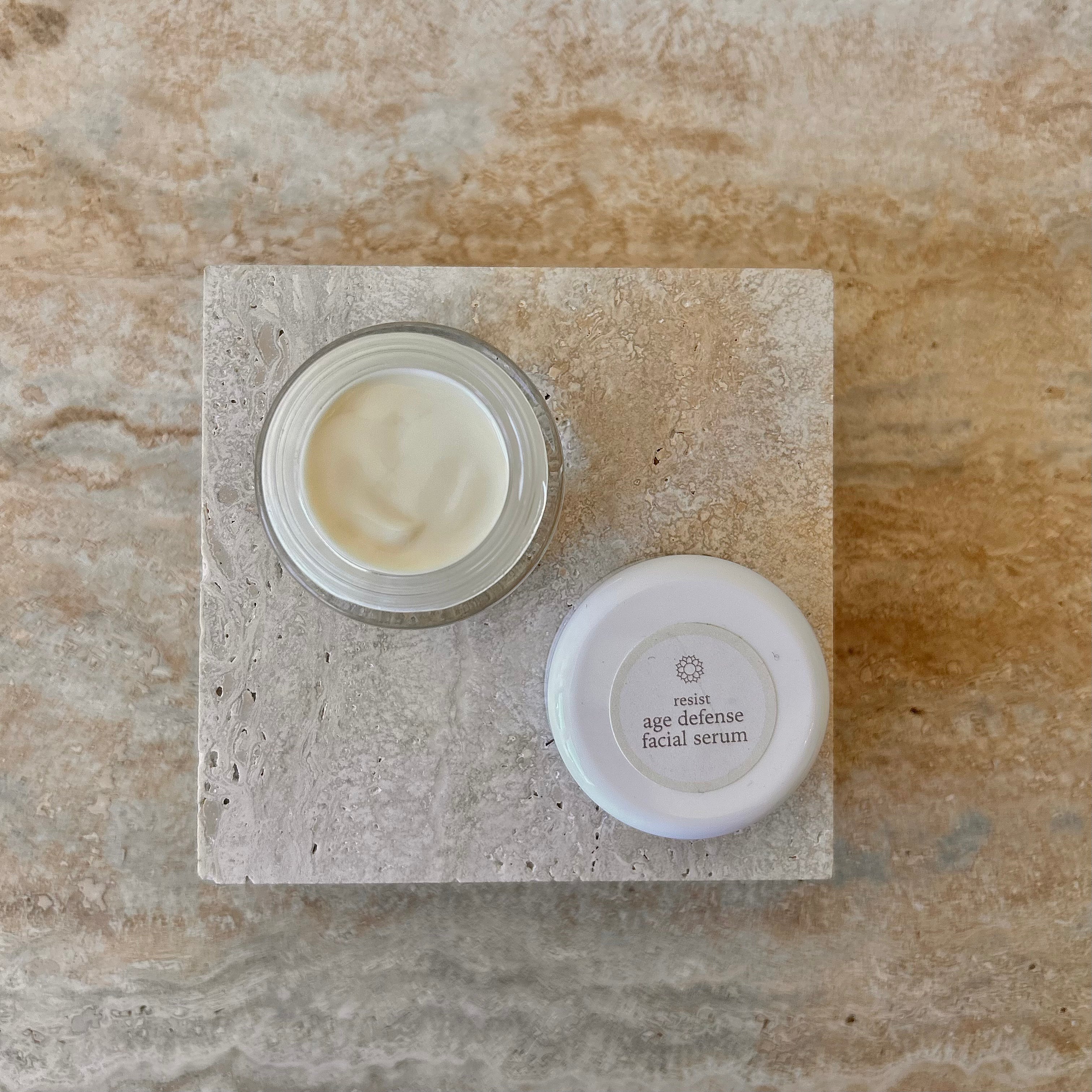 This beautiful serum has a light, creamy texture, packed with organic aloe, organic jojoba oil, carrot oil, organic shea butter, soothing organic lavender, organic calendula, organic rooibos, MSM & hyaluronic acid. This super charged serum applies easily and absorbs quickly, leaving your skin hydrated & glowing. Age gracefully? Thank you but we gracefully RESIST!!!