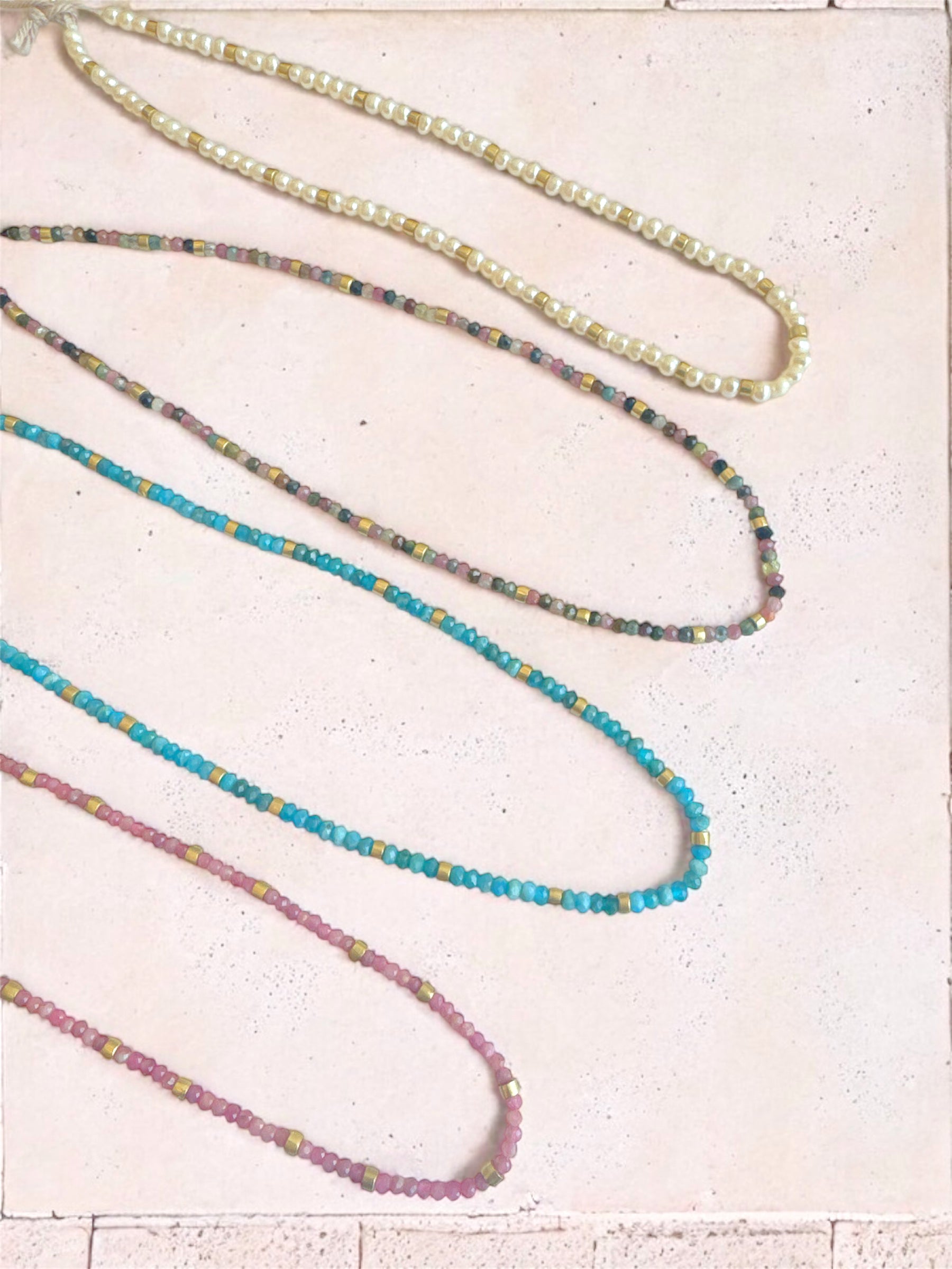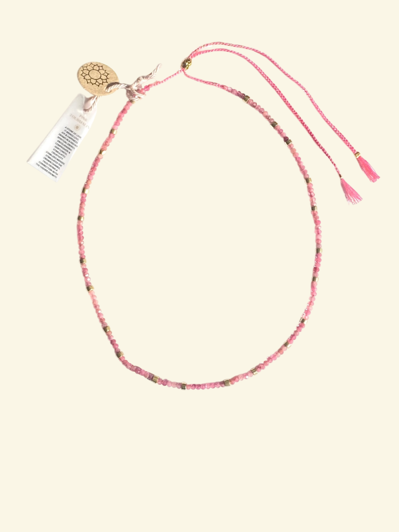 The bracelet is tagged with an explanation ofPink Tourmaline powers as well as a recycled paper envelope to keep it safe.