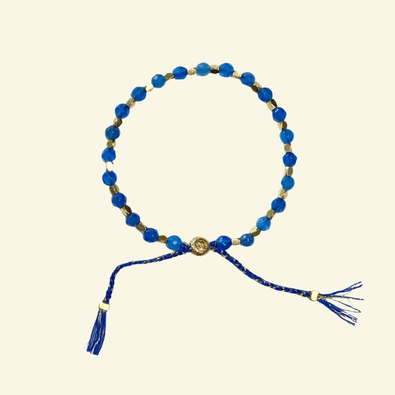 Bring positive energy to your life with this SunMoonRain 100% handmade healing & positive energy bracelet in Blue Agate with 18k gold vermeil nuggets that combines modern sophistication & design with healing abilities.