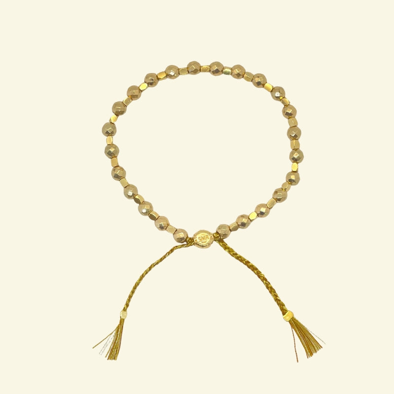 Each crystal bracelet is tagged with an explanation of Gold Hematite's powers as well as a beautiful linen pouch, to keep it safe. Faceted beads are 4mm and circumference of bracelet fits 17 -19 cm.