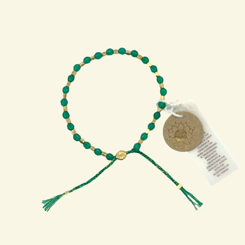 Bring positive energy to your life with this SunMoonRain 100% handmade healing & positive energy bracelet in Green Agate with 18k gold vermeil nuggets that combines modern sophistication & design with healing abilities.