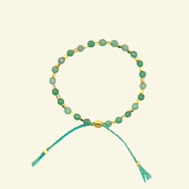 Bring positive energy to your life with this SunMoonRain 100% handmade healing & positive energy bracelet in Green Aventurine with 18k gold vermeil nuggets that combines modern sophistication & design with healing abilities.
