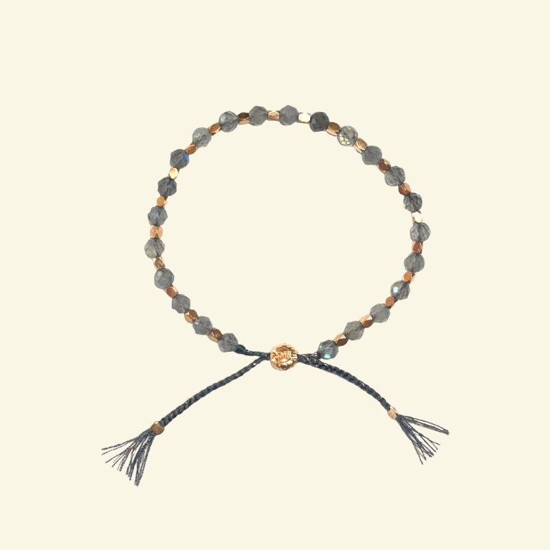 Each bracelet is tagged with an explanation of Labradorite's powers as well as a beautiful linen pouch, to keep it safe. Faceted beads are 4mm and circumference of bracelet fits 17 -19 cm.