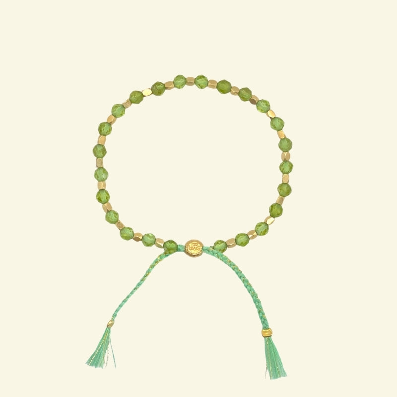 Each bracelet is tagged with an explanation of Peridot's powers as well as a beautiful linen pouch, to keep it safe. Faceted beads are 4 mm and circumference of bracelet fits 17 -19 cm.