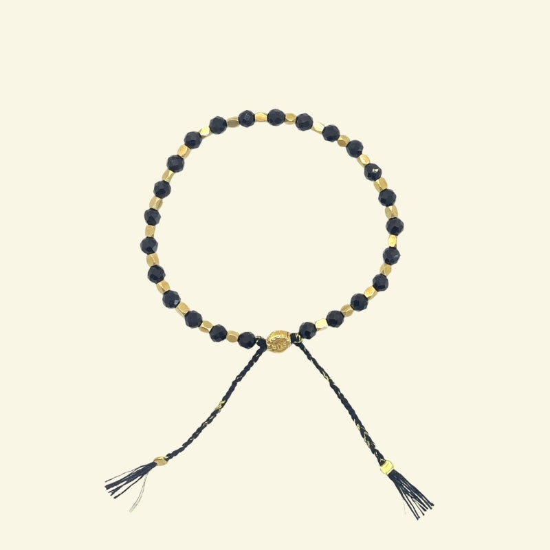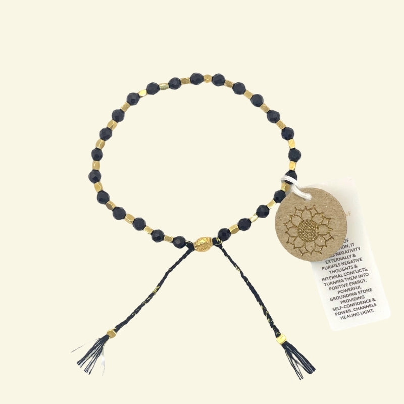 Each bracelet is tagged with an explanation of black tourmaline's powers as well as a beautiful linen pouch, to keep it safe. Faceted beads are 3mm and circumference of bracelet is 17 cm.