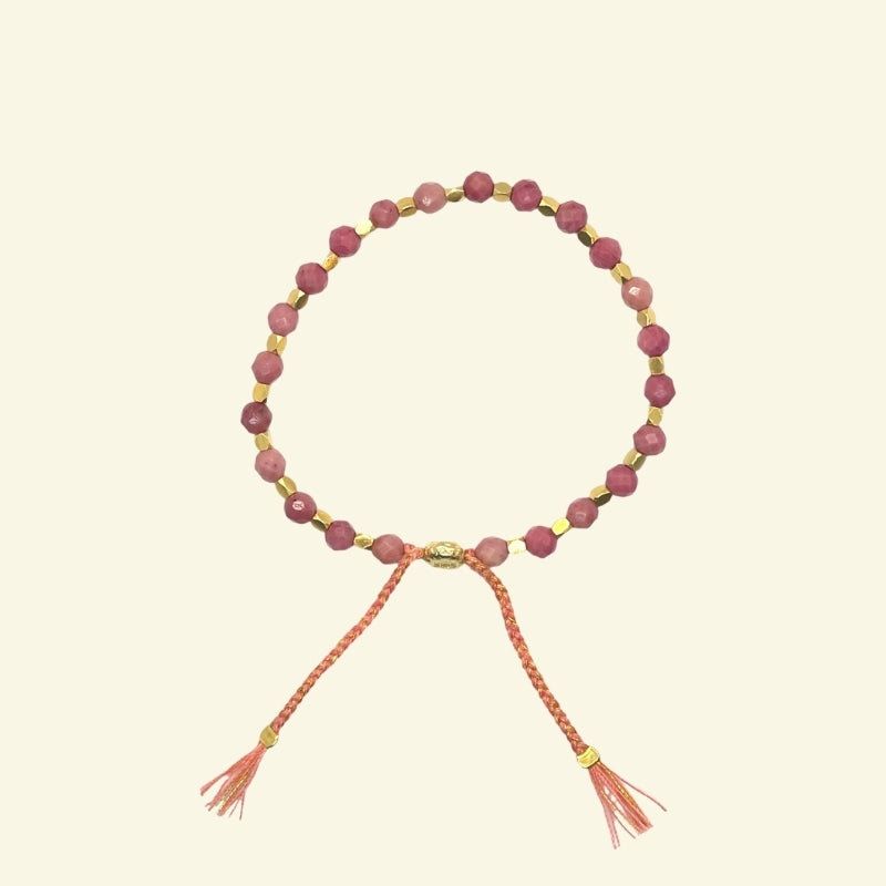 Each bracelet is tagged with an explanation of rhodonite's powers as well as a beautiful linen pouch, to keep it safe. Faceted beads are 4 mm and circumference of bracelet fits 17 -19 cm.