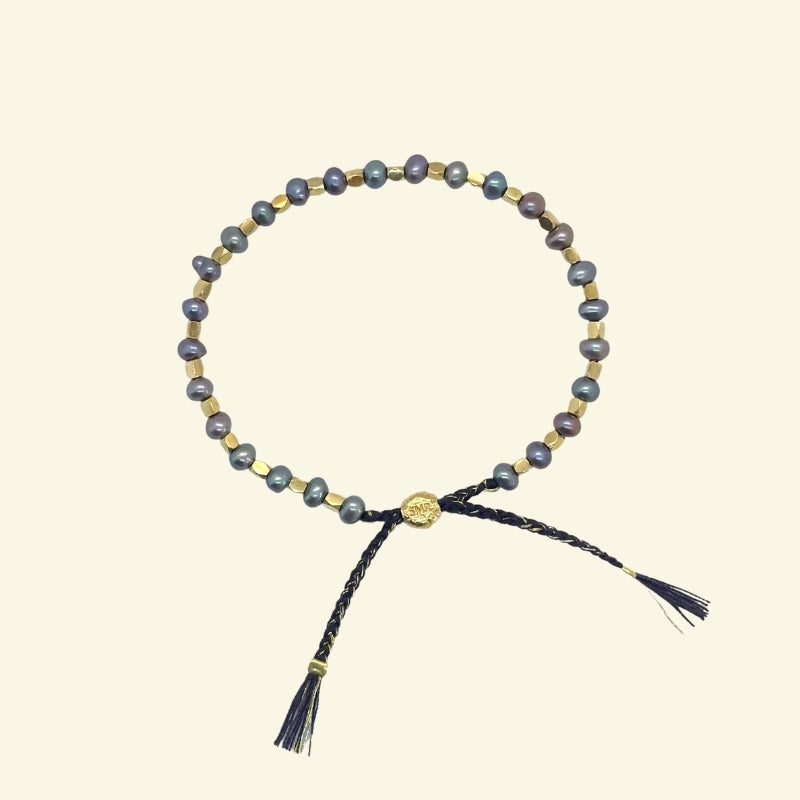 Bring positive energy to your life with this SunMoonRain 100% handmade healing & positive energy bracelet in Pearl with 18k yellow gold vermeil nuggets that combines modern sophistication & design with healing abilities.