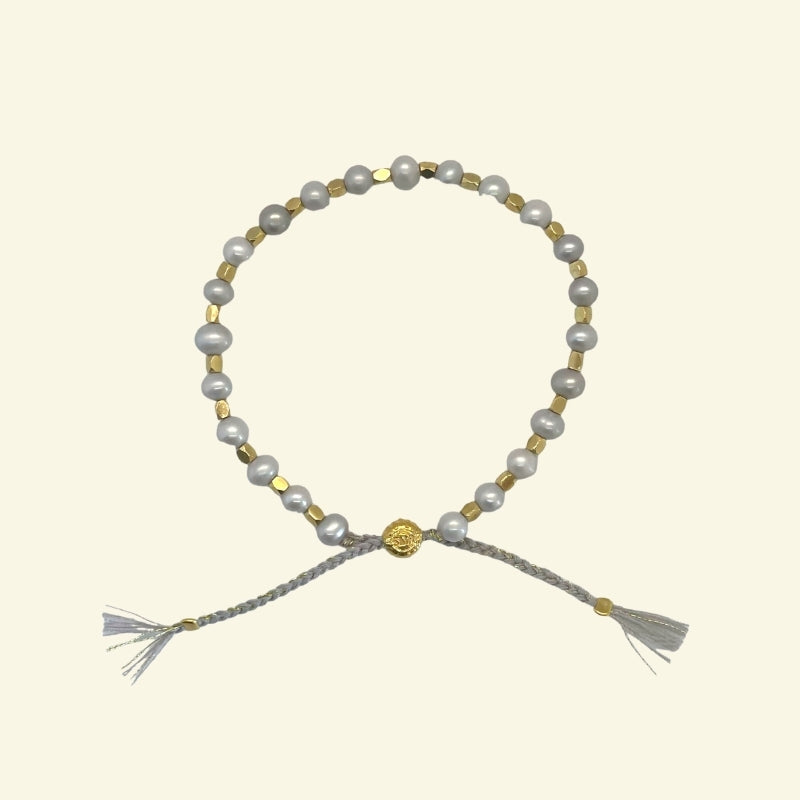 Bring positive energy to your life with this SunMoonRain 100% handmade healing & positive energy bracelet in Pearl with 18k yellow gold vermeil nuggets that combines modern sophistication & design with healing abilities.