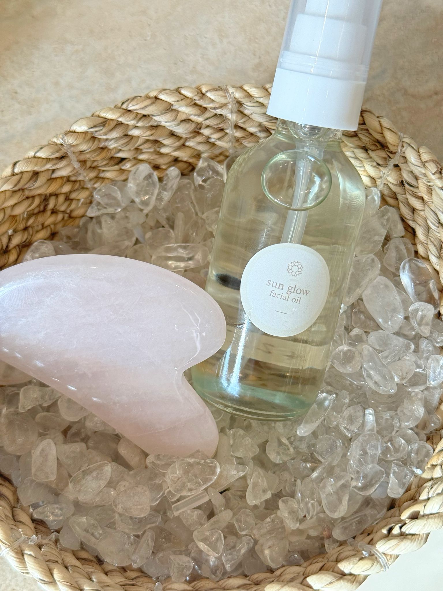 sun m⚭n rain sun glow oil + rose quartz gua sha tool