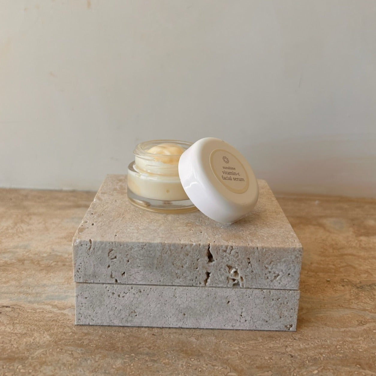 A founder favorite, we can't get enough of our Sunshine Serum! A Vitamin C concentrated facial serum that is gentle, effective, and nourishing. Formulated with nutrient-dense rosehip seed oil, which contains powerful and effective Omega-3 & 6 fatty acids, an additional boost of Vitamin C, Gamma Linoleic Acid, and other essential fatty acids to promote the healthy look of even, bright skin.