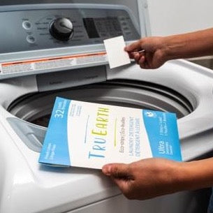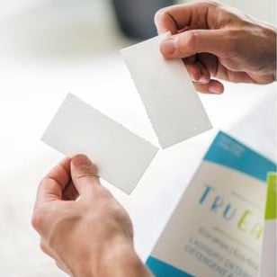 Each Tru Earth eco-strip packs ultra-concentrated, hypoallergenic, eco-friendly cleaning power into a tiny, pre-measured strip of detergent that you just toss in the wash.